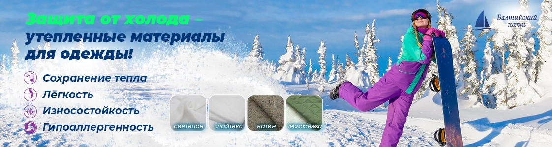 В каталоге интернет-магазина тканей Балтийский Текстиль предлагается ассортимент швейных утеплителей для пошива утеплённой спецодежды, для защитной одежды со специальными свойствами, туристической теплой одежды, осенне-зимней мужской, женской и детской одежды.